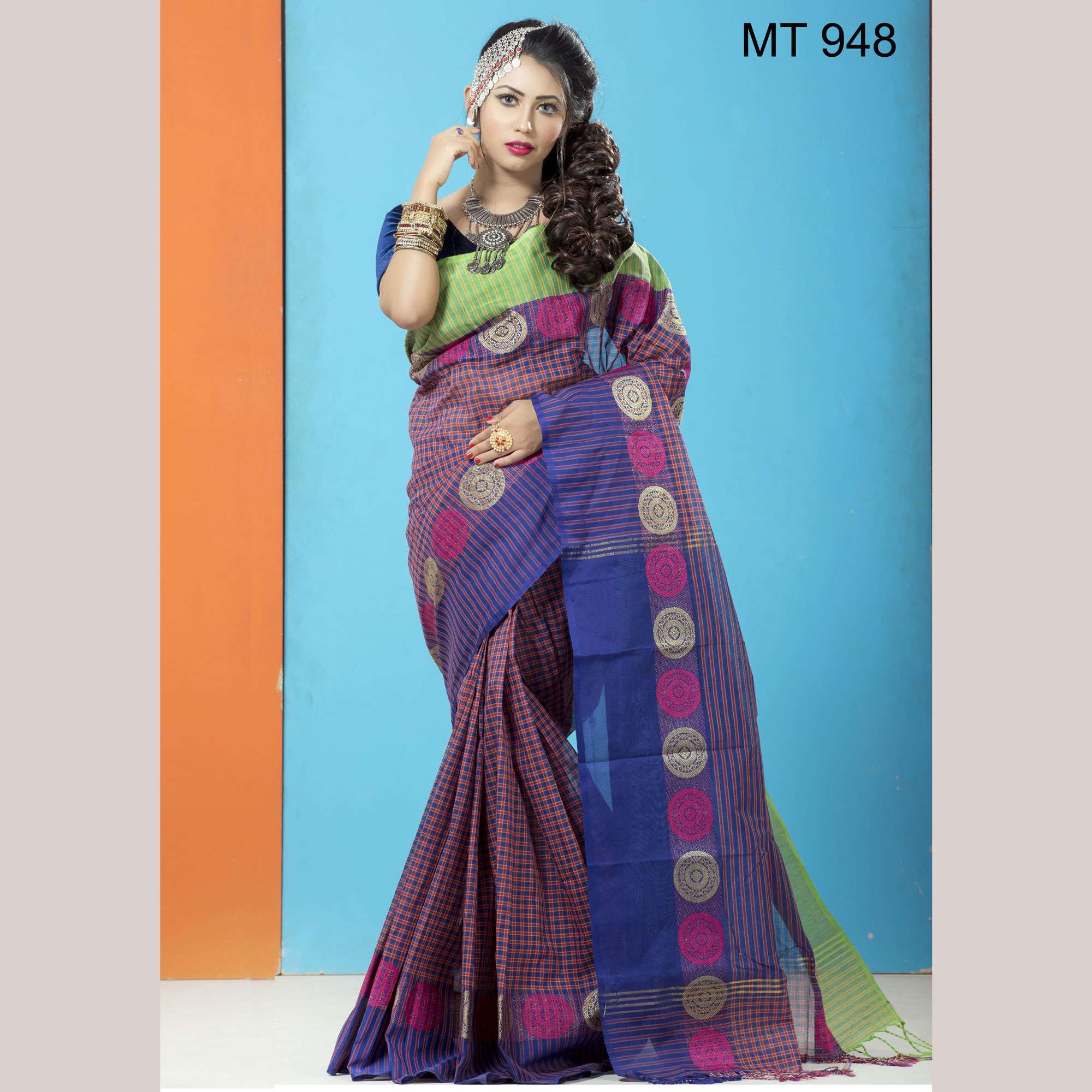 টাঙ্গাইল তাঁতের সুতি চাকা পাড় শাড়ী ব্লাউজ পিছ সহ (MT-948)